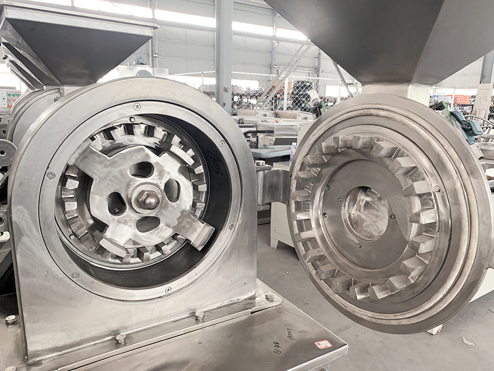 本機(jī)結(jié)構(gòu)簡(jiǎn)單、堅(jiān)固、運(yùn)轉(zhuǎn)平穩(wěn),粉碎效果好、噪音低、振動(dòng)小、生產(chǎn)過(guò)程中無(wú)粉塵飛揚(yáng),被粉碎物可直接由主機(jī)磨腔中排出,粒度大小通過(guò)更換不同孔徑篩網(wǎng)而控制。符合GMP要求。